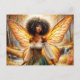 Send a touch of magic with this autumn forest fairy postcard, featuring a breathtaking portrait of a beautiful Black fairy with radiant golden wings. Set in a glowing woodland with cascading leaves, warm amber light, and a gentle waterfall, this artwork blends fantasy elegance with the vibrant colours of fall. The fairy’s intricate corset dress, flowing skirt, and crown of autumn leaves add to the ethereal, enchanting atmosphere.