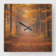 Cosy autumn forest wall clock with golden and orange leaves. A warm and peaceful timepiece for seasonal home decor