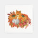 A sweet baby fox sits amid vintage pumpkins and fall leaves in autumn colours against a white background to make these cute autumn and Thanksgiving themed paper napkins for home or party ware.