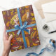 Autumn foxes on chocolate brown wrapping paper