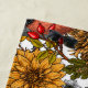 Hand-drawn autumn pattern featuring bullfinches, dahlia and chrysanthemum flowers, various berries, leaves and bugs