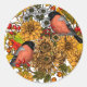 Hand-drawn autumn pattern featuring bullfinches, dahlia and chrysanthemum flowers, various berries, leaves and bugs