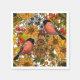 Hand-drawn autumn pattern featuring bullfinches, dahlia and chrysanthemum flowers, various berries, leaves and bugs