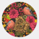 Hand-drawn autumn pattern featuring bullfinches, dahlia and chrysanthemum flowers, various berries, leaves and bugs