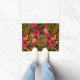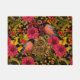 Hand-drawn autumn pattern featuring bullfinches, dahlia and chrysanthemum flowers, various berries, leaves and bugs