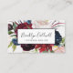 This autumn garden burgundy business card is perfect for a small business owner, consultant, stylist and more! The floral design features stunning blush pink, red, navy and burgundy watercolor flowers, blossoms and green leaves arranged in a lively fall bouquet.