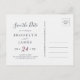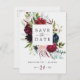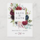 This autumn garden burgundy save the date announcement postcard is perfect for a fall wedding. The design features stunning blush pink, red, navy and burgundy watercolor flowers, blossoms and green leaves arranged in a lively fall floral frame.