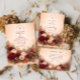 Inspired by rich autumn florals and romantic seasonal palettes, this wedding design features layered roses, dahlias, and soft foliage in warm rust, blush, and cream tones. The painterly floral border frames the layout beautifully, creating a refined yet inviting atmosphere that feels both classic and celebratory.