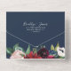 This autumn garden navy blue wedding all in one invitation is perfect for a fall wedding. The floral design features stunning blush pink, red, navy and burgundy watercolor flowers, blossoms and green leaves arranged in a lively fall wreath/bouquet. Hand write your guest addresses on the back of the folded invitation, or purchase the coordinating guest address label stickers (sold separately).