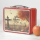 This is a standard metal lunchbox that appears to work just fine. We designed this box ourselves with an uploaded photo and custom text on the front and back. It looks absolutely beautiful except the front of the lunchbox is not centered like it shows in the photo. The print borders don't align with the inset flat part of the box where the preview photo online showed it perfectly centered in there. The back looks nice and centered though.