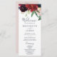 This autumn garden wedding program is perfect for a fall wedding. The floral design features stunning blush pink, red, navy and burgundy watercolor flowers, blossoms and green leaves arranged in a lively fall bouquet. Include the name of the bride and groom, the wedding date and location, thank you message, order of service, bridal party and an optional "in loving memory" memorial.