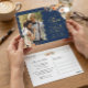 Autumn Gold Floral Navy Blue Photo Save the Date Postcard