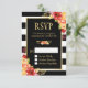 Autumn Gold Orang Red Floral B&W Stripes RSVP Card