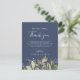 This autumn greenery navy thank you reception card is perfect for a fall wedding. The modern rustic design features navy blue, sage green and gold leaves with sprigs of dark blue flowers. Place these cards at the table setting for each of your guests at your wedding reception. Personalise the card with your names and a special thank you message.