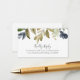 This autumn greenery wedding website RSVP enclosure card is perfect for a fall wedding. The modern rustic design features navy blue, sage green and gold leaves with sprigs of dark blue flowers.