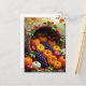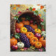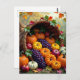 A pretty postcard with a cornucopia full of pumpkins, grapes, apples and surrounded by Fall leaves. A sweet way to keep in touch with someone this Fall.