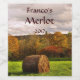 Easily personalise the text on this beautiful red wine bottle label which features a lovely autumn landscape in seasonal fall foliage colours of red, orange, yellow, brown and green. A storm has passed and the sun is breaking through the clouds onto a mown field with round bales of hay.