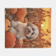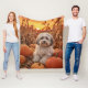Embrace the rustic charm of Autumn with our stunning blanket showcasing an adorable Havanese dog in a harvest field as the sun sets in the background.