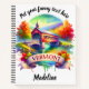 This picturesque setting showcases a charming red covered bridge surrounded by trees dressed in fiery autumn hues. A tranquil river reflects the beauty of Vermont's fall season.
