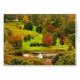 This fine art note card features a lovely seasonal autumn day. The trees are brilliantly coloured with fall foliage colours of red, orange, yellow, gold, green and brown. Two benches look out onto a pretty pond with water reflections. Take a stroll through this colourful park in the hills of Ithaca in the Finger Lakes region of upstate NY.