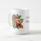 Coffee mug is shown with a lovely autumn pinecone and acorns floral art print. Autumn Is Beautiful Text.