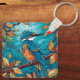 A key chain featuring a kingfisher during autumn in stained glass style.