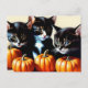 Celebrate the cosy vibes of autumn with this delightful design featuring three adorable kittens nestled among mini orange pumpkins. Perfect for Thanksgiving, this image captures the playful spirit of the holiday. These charming kittens are sure to bring joy and smiles to your loved one's day.