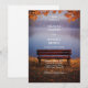 A serene and romantic design featuring a peaceful lakeside scene with a wooden bench surrounded by soft autumn foliage. The misty background and warm seasonal tones create a calm and intimate atmosphere, perfect for a timeless and emotional presentation. The natural landscape adds depth and elegance, making it ideal for announcing a special moment in a refined, nature-inspired style.