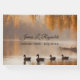 Ducks swimming on an autumn lake with fall foliage for memorial service or funeral.