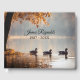 Ducks swimming on an autumn lake with fall foliage for memorial service or funeral.