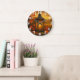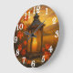 Autumn lantern with maple leaves glow large clock