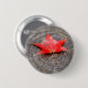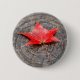 A photo of a single red autumn leaf resting on a log round button. It's time for autumn! <3