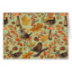 Hand-painted autumn pattern with various autumnal leaves, berries, acorns, birds and mushrooms