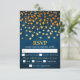 This rustic and grunge wedding rsvp card comes with a meal choice option for guests and features gold leaves on a blue distressed background. The text combines italic and serif fonts for a modern and stylish look. This will be perfect for autumn fall weddings.