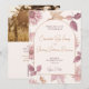 This Romantically subtle shades of Blush Pink, Mauve, and Soft Terracotta Leaves and Flowers give this Wedding Invitation an elegant Autumn feel with a hint of Bohemian. The desired watercolor style adds just the right feminine aesthetic! The Elegant Script and the Simple Design placement of your info give everything an easy ability to be read! The back has your Photo at the top and QR Code and additional info as well.