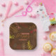 Celebrate Thanksgiving with this beautiful and festive paper plate! The plate features a warm, dark brown background with a border of vibrant red, yellow, and green leaves and berries. The cursive “Happy Thanksgiving” text adds an elegant touch, while the customisable family name in a sans-serif font makes it personal. Perfect for adding a special touch to your Thanksgiving table! 🍁🦃🍽️
