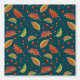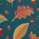 Cute colourful pattern featuring orange coloured leaves and yummy autumnal forest harvest such as chestnuts, hazelnuts and berries.