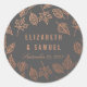 Customise these Elegant and Chic Autumn Leaves Faux Copper Wedding Names Round Stickers designed on a dark grey background. Perfect a stylish fall wedding. Please note that the copper is a colour print and is not actually metallic colour or foil. All the other matching items can be found in Autumn Leaves Faux Copper Wedding Collection.