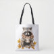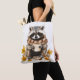 Autumn leaves cosy racoon with cup of coffee tote bag