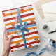 Autumn Leaves Fall Striped Personalised Wrapping Paper