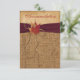 This gorgeous rustic autumn wedding enclosure accommodations card in fall colours of burnt orange, rust, gold and brown has images of three dried maple leaves on it and a dark burgundy wine PRINTED ribbon, and a FAUX burlap sack background with an aged burnt paper look overlay on it. All the text is a template, so you can change it to be a reception card, a directions card, a gift registry or wishing well card, or a wedding website or other information card. It's perfect for a casual or informal rustic country autumn wedding. The insert is shown here on basic paper, but it would look lovely on recycled, linen, felt, or the metallic papers in ice or champagne. If you would like a subtle lustre to the paper, choose the metallic papers. If you want a nice heavyweight texture, choose felt paper. ****PLEASE NOTE that everything will print as it appears on your monitor, so if you have typos, alignment, or sizing issues, please contact me for help BEFORE you order. I can't help with anything once the order has been placed with Zazzle. If you need any other matching items, please email niteowlstudio@gmail.com.