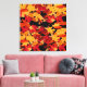 This gorgeous wrapped canvas print features fall foliage colours of red, orange, yellow and brown on a black background.