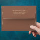 Accent your fall or Thanksgiving correspondence with this colourful 5x7 envelope. The exterior is a rich nut brown and the interior is printed with colourful orange and red fallen autumn leaves. A nice compliment to Thanksgiving invitations, making your mail stand out among the rest. The back flap can be personalised with your return address using the easy provided template!