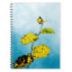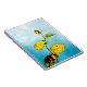 A small poplar tree twig with yellow withered and weathered leaves isolated against textured blue and white background which serves as a sky. Photographic painting.