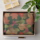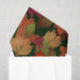 Watercolor Fall leaves in reds, pinks, and orange on a dark green background, A wrapping paper perfect for all occasions.