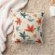 This illustration features a charming, minimalist pattern of autumn leaves in vibrant shades of red, orange, and muted green. The leaves are scattered across a soft beige background, with delicate splatters of black ink adding a touch of texture and artistic flair. The design captures the essence of fall, evoking a sense of warmth and natural beauty.