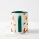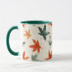 This illustration features a charming, minimalist pattern of autumn leaves in vibrant shades of red, orange, and muted green. The leaves are scattered across a soft beige background, with delicate splatters of black ink adding a touch of texture and artistic flair. The design captures the essence of fall, evoking a sense of warmth and natural beauty.