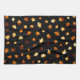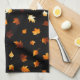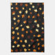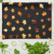 This fall design features various leaves with a fiery texture of orange, red, and brown against a black background.