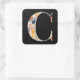 Autumn Leaves Patterned Letter C Black Initial Square Sticker