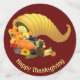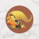 Beautiful horn of plenty with pumpkin, fruits and autumn leaves on reddish brown shades Table Confetti.